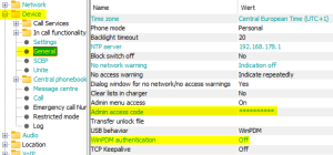 - Open section Device and step to Central phonebook. Change the central phonebook mode to LDAP and enter the appropriate parameters for the ldap directory to be queried.